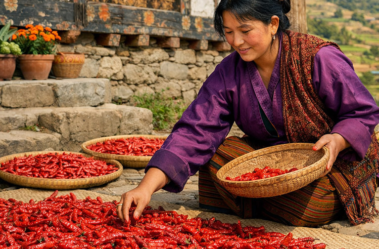 Why Red Chilies Are Hung on Bhutanese Roofs