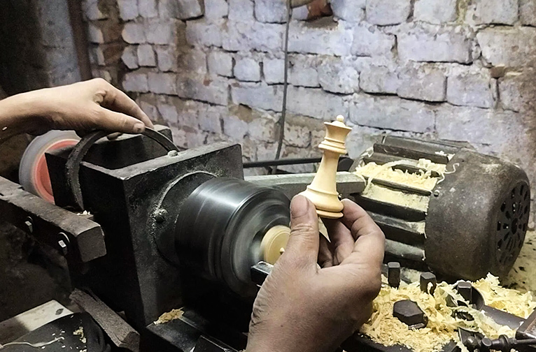 Launched in 1962 as a family business by his grandfather Shiv Dyal Sharma The Chess Empire formerly the Amritsar Ivory Works, is India’s oldest and largest chess manufacturing company. Back in the day, before the ban on international ivory trade in the 1990s, Amritsar had a fair number of artisans who were adept at ivory carving…be it for hair combs, jewellery, furniture, decorative items or even chessmen. Both Sharma’s father, Rajesh Sharma, and grandfather Shiv Dyal Sharma were so skilled in ivory carving it inspired them to set up The Chess Empire. Ivory was replaced by shisham, boxwood, rosewood and ebony to carve the chessmen.