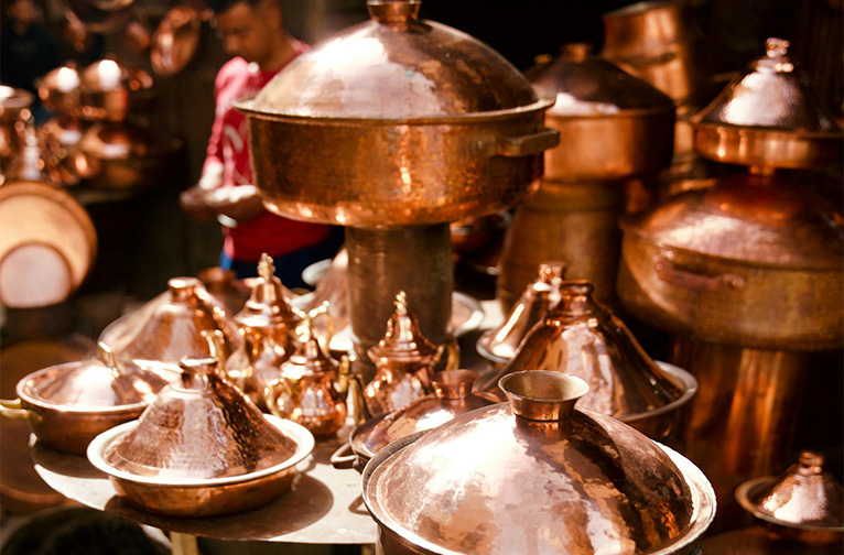 Given Lucknow’s deep roots in the culinary crafts it’s no surprise that much is made of the copper (tamba) and brass (peetal) utensils the chefs used. Specific utensils were pressed into service to create those masterly dishes in the nawabi kitchens of Awadh. From huge copper degs (pots) to lagans (flat cooking vessels) each had a special niche on the kitchen shelf. These were metals of choice for the chef as the pots would distribute heat evenly, enhancing the flavours of the legendary dishes such as the biryanis and kormas. Back in the day the artisan would unleash his artistry on the vessels in the form of designs inspired by geometric, floral and avifaunal fantasies. The making of the vessels themselves was an art form, not just a functional tool for the bawarchis. Kalai, or polishing of copper vessels is a tradition which has grown hand in hand with Lucknow’s famous copper vessel making traditions. A wander along the old bazaar lanes, especially in Ahiyaganj, will reveal how these old handcrafting traditions are alive and catering to families across town to date. Pick up a lovely, intricately worked paandan or a surahi as a souvenir.