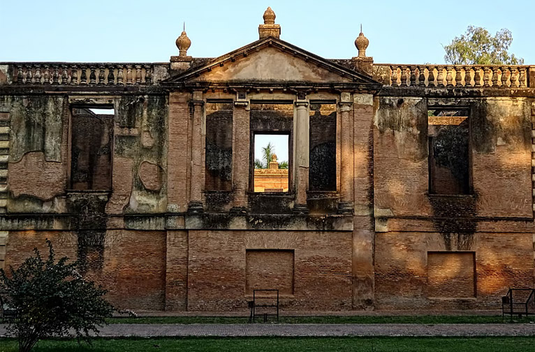 Your first encounter with these slim, rosy-hued bricks, also known colloquially as 'Gumma', are at some of Lucknow’s most epic nawabi architectural marvels, such as the climate-wise building of the Bara Imambara, Rumi Darwaza, and the Dilkusha Kothi Palace. Even the Hussainabad Picture Gallery Shahi Talab, dating back to 1839, featured lakhauri bricks. These were used in the construction of the separate zenana and mardana enclosures of the hamam khanas built on either side of the pond.