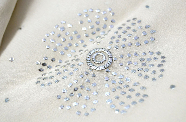 Today there are just a few craftsmen who keep this generational skill in tiny workrooms in the Chowk area in the city. A luxury pursuit created at first exclusively for the nobility, mukaish is one of Lucknow’s most delectable embroidery traditions since the 16th century. In its heyday the artisan only worked with real gold and silver threads to painstakingly create this canvas of ‘starry’ beauty. The three-step process involves Chapaayi (Printing the Design), Takaayi (Embedding the Metal Wires) and Ghutaayi (Polishing for the Shine). Kamdani is a more elaborate and intricate form of Mukaish work as opposed to Fardi Ka Kaam.