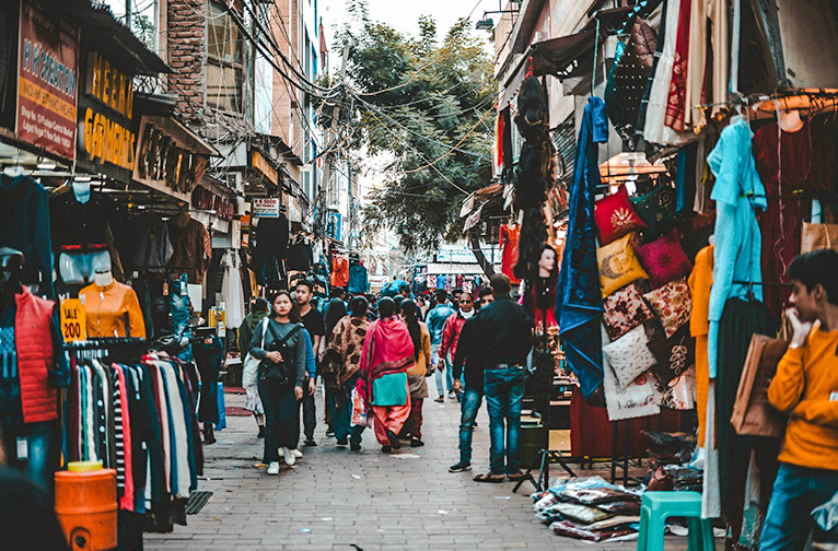 Sarojini Nagar Flea Market— Diplomat’s wives, college girls and harried housewives thrill to Sarojini Nagar’s Flea Market’s welter of goods on display. From high fashion rejects to sun goggles and costume jewellery, from school bags and sweaters to dhurries and household linens, you can mix and match it all with your moods and your needs at bargain rates. Shopping for a clingy party gown or a pretty nightdress, jeans or Ts, blingy handbags or mirror- encrusted Gujarati tribal bags, was never so easy and fun.