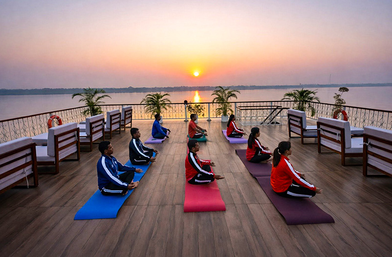 Onboard facilities include a lounge café, a great fine dining restaurant where one may enjoy a regional gastronomic odyssey, which puts the limelight on delicious local Banarasi specialities. The fully equipped gym and spa and yoga sessions cater to your wellness routines. Your spiritual wellbeing is further enhanced by the hallowed sites, comprising temples and sacred ghats of Heritage Zone on the shoreline. You’ll enjoy a truly magical and soul-stirring riverine experience witnessing the elaborate Ganga aarti at dusk from the ship.