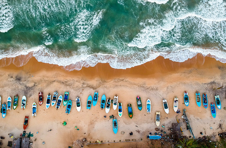 At Bentota, turquoise waters invite rest and reflection. A boat ride along the Madu River drifts past mangroves, cinnamon plantations, and secret islands. Kingfishers dart across the water, monitors bask on the banks, and the river breathes a slow, timeless rhythm.