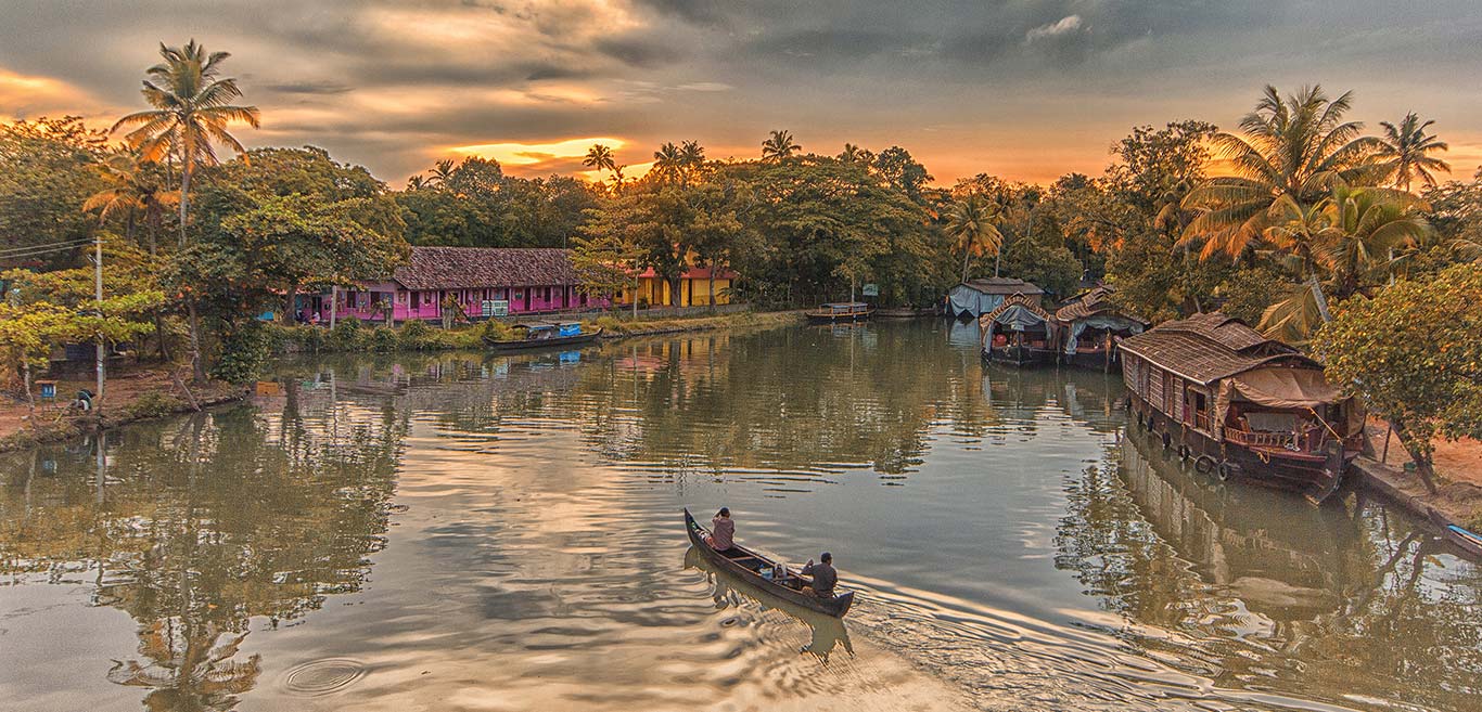 civilizations, cascading coastline, shimmering backwaters, classical temple