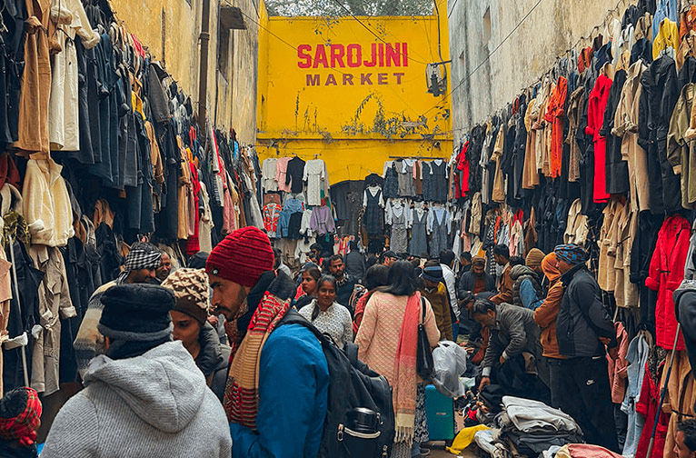 Sarojini Nagar Flea Market— Diplomat’s wives, college girls and harried housewives thrill to Sarojini Nagar’s Flea Market’s welter of goods on display. From high fashion rejects to sun goggles and costume jewellery, from school bags and sweaters to dhurries and household linens, you can mix and match it all with your moods and your needs at bargain rates. Shopping for a clingy party gown or a pretty nightdress, jeans or Ts, blingy handbags or mirror- encrusted Gujarati tribal bags, was never so easy and fun.