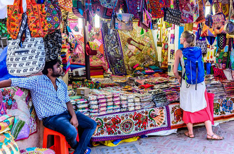 Further along the road Janpath’s line-up of shops and stalls spill over with a heady mix of inexpensive trinkets and sarongs, boho skirts, capris, and embroidered kurtis, ittar and hookahs; Kolhapuri chappals, mirror works cloth bags and cushions from Gujarat, and scarves and pherans from Kashmir. The Tibetan shops are a delight for their masks, Thangka paintings and prayer beads, ringing bowls and Buddhas.